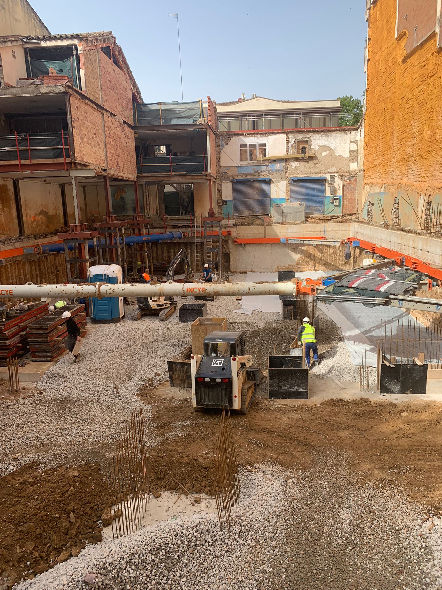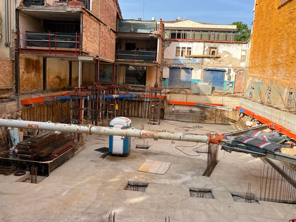 Parquing construido sosteniendo edificaciones existentes protegidas por patrimonio.